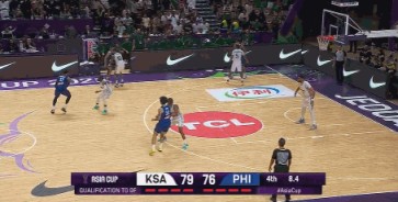 在常规时间最后时刻,菲律宾落后三分,布朗利顶投高难度三分,将比赛拖入加时赛。