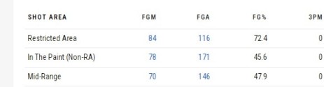 相关新闻>>>能力值合理吗?上赛季中投前十:德罗赞断层领跑 SGA第二布克第三