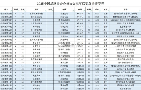 2025中国足球协会会员协会冠军联赛总决赛赛程出炉