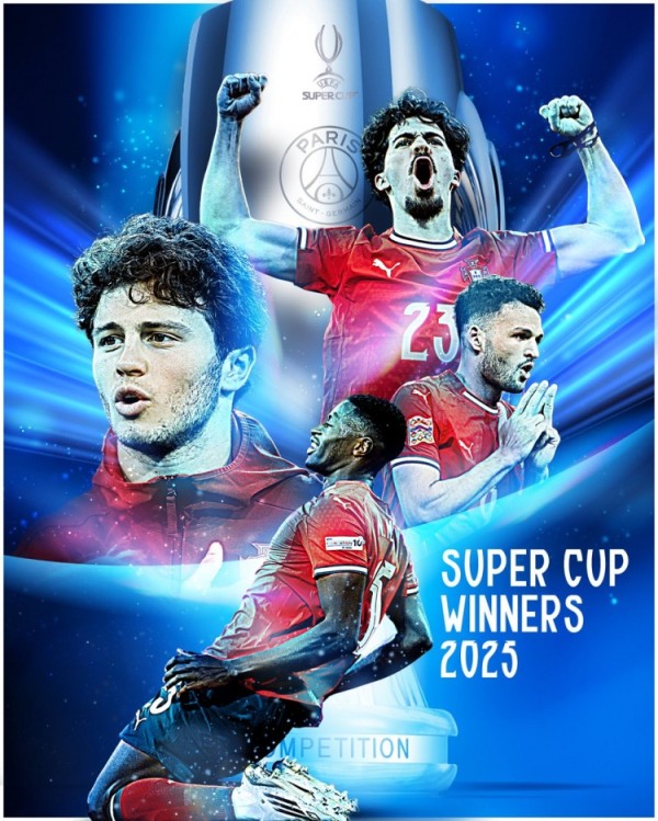 葡萄牙官方写道:“葡萄牙天才闪耀欧洲之巅,巴黎圣日耳曼夺得欧洲超级杯冠军。”