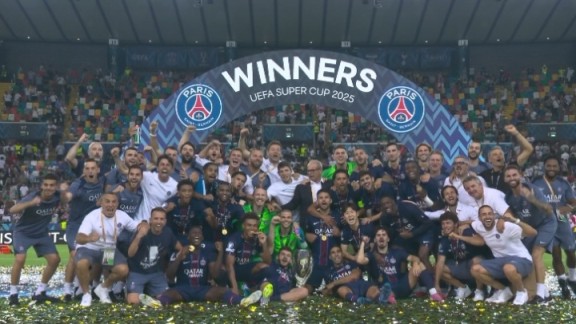 【捧杯时刻】巴黎队史首夺欧超杯!马尔基尼奥斯捧起冠军奖杯