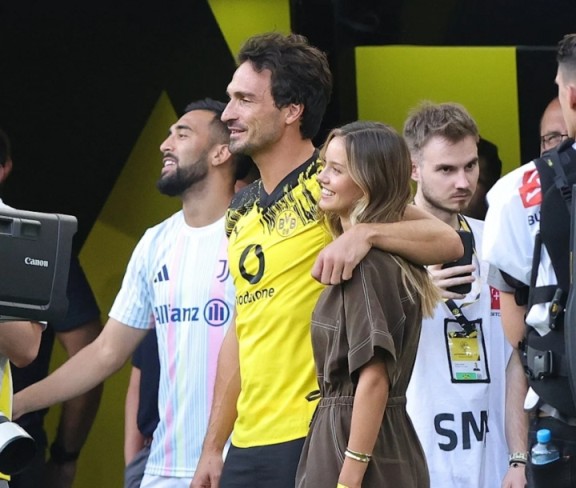 值得一提的是,在告别战当天,胡梅尔斯带上了小自己10岁的女友尼古拉-卡瓦尼斯。