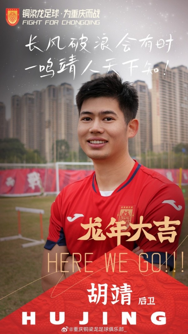 老东家的祝福!重庆铜梁龙:祝胡靖早日康复,回到球场