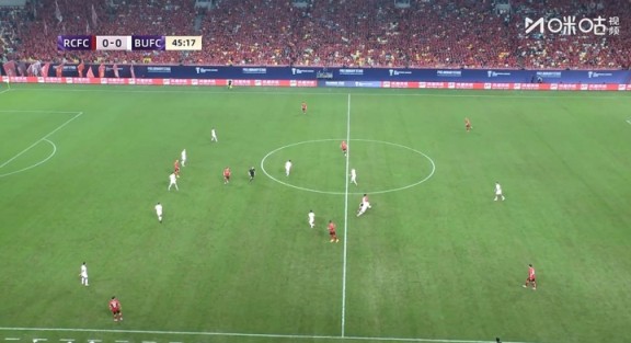 比赛第46分钟,杨明洋出现失误被断球,曼谷联球员射门稍稍偏出。
